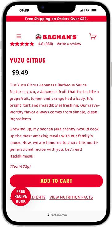 â Make the recipe pages directly shoppable: Add an "Add Bachan's to Cart" or "Buy the Sauce for this Recipe" floating sticky button on all recipe pages to convert high-intent readers seamlessly.