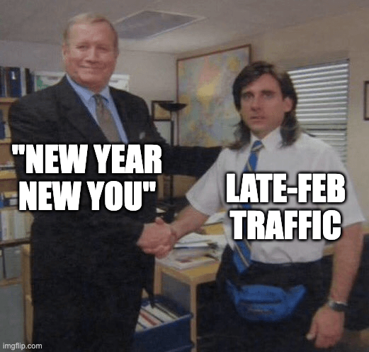 By February the resolution mindset evaporates, and all that creative starts quietly working against you, speaking to a mindset your shoppers have already moved on from.