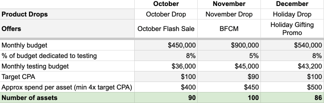 At $450K/month, you need 90 new assets in October alone. That's roughly 22 new pieces of creative per week.