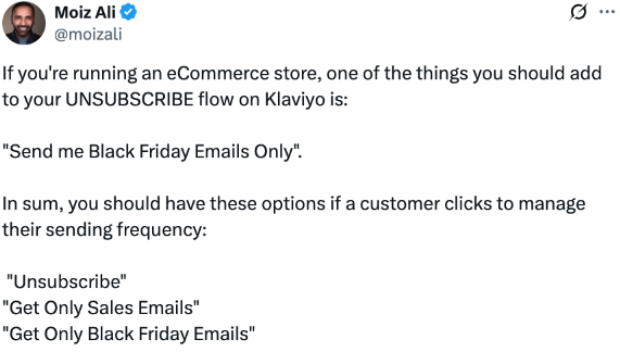 If your customers are feeling the email fatigue donât just offer the option to âunsubscribeâ, give them other choices.