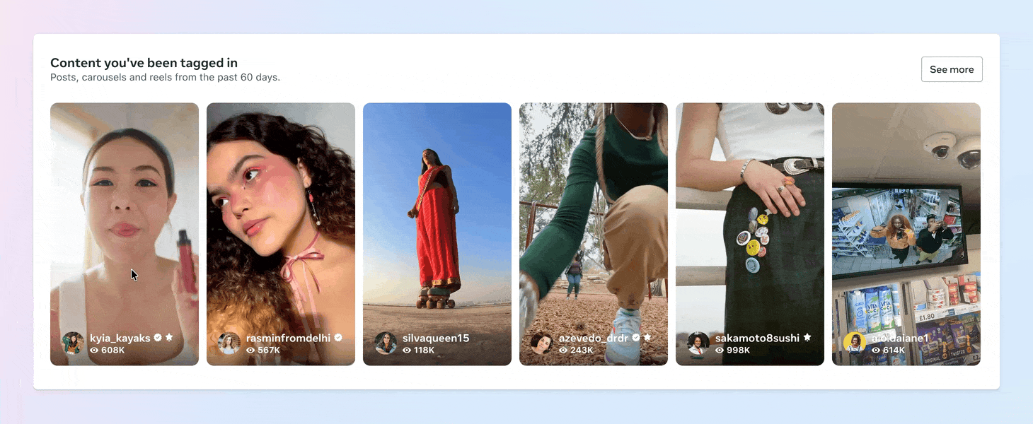 Creator recommendations: Businesses can see which creators have tagged the brand in previous posts or who have expressed an interest in partnering with the brand.