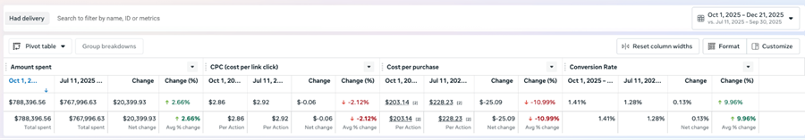 Now Meta can understand which audiences buy this product, how long their conversion window is, what CPA is sustainable, and what creative actually resonates instead of returning one blended average across all of it.