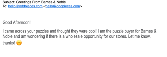 During product development, Ginny received an unexpected email from Barnes & Noble.