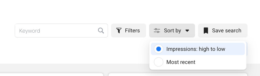 Sort by impressions and most recent to have an understanding of whatâs delivering most for a competitor vs what theyâve launched most recently:
